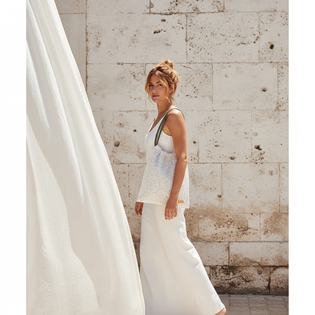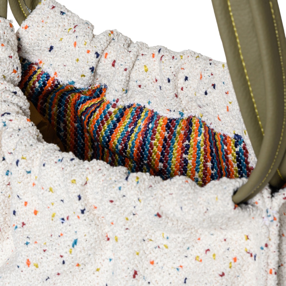 The Mosaic Shoulder Bag is crafted from our signature jacquard-woven fabric and complemented by vegan leather double straps. Characterized by a softly gathered top and fluid silhouette, it balances understated elegance with everyday functionality. Lightweight yet spacious, it is designed to carry daily essentials with ease. Left unlined to highlight the character of the signature fabric, featuring one internal pocket. Handmade in Greece at ALEF atelier.